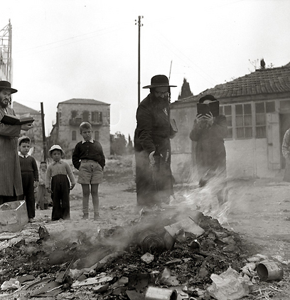 5-1. ערב פסח, 1960. שכונה חרדית בירושלים ביעור חמץ