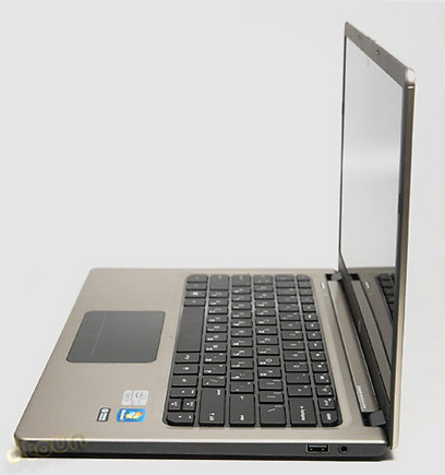 באופן טבעי, הדבר הראשון אליו מופנות העיניים הוא מסך ה- LCD LED שהינו מבוסס פנל TN, בשני צידיו (ימין ושמאל), המסגרת דקה יחסית בהשוואה לצדדים האחרים (מעלה מטה) - שם ממוקמת גם המצלמה. עוצמת האור מספקת גם בחדר מואר, אולם זויות הצפיה פחות מרשימות. הן מקובלות בסוג צג זה (TN) כאשר זויות ימין שמאל סבירות (תמונה מתכהה במעט במבט מהצד), אבל בכיוון מעלה מטה כבר פחות סימפטי כאשר גם שינוי קל בזוית הפתיחה משנה גם את בהירות התמונה. מצאתי כי הכי טוב לצפות במסך כשהוא פתוח על צירו כמעט עד הסוף – בנקודה בה הוא נעצר ואז הניגודיות מציגה את אותיות הטקסט כשהן שחורות וברורות לקריאה על גבי רקע בהיר, זוית פחותה מזו תציג תמונה בהירה מדי. ציפוי המסך מבריק ויש השתקפויות בזוית. רזולוציית התמונה הינה 1366x768 פיקסלים, זהה לזו של חלק גדול מדגמי האולטרבוקים עם מסך 13.3" אך פחותה מזו של מקבוק אייר או אסוס UX31.