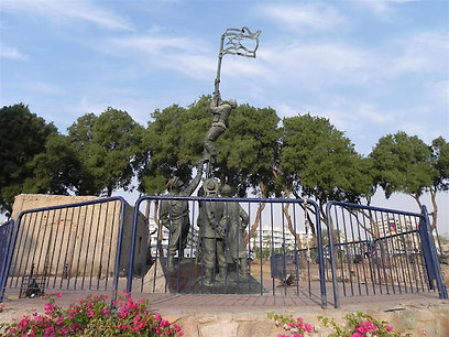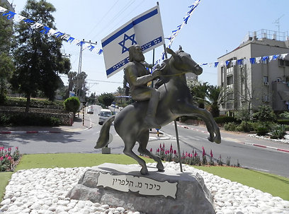 "יחי הדגל העברי!" פסלו של הלפרין מניף את הדגל בנס ציונה