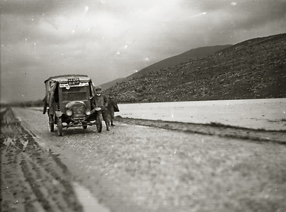 14. חורף 1928 על הדרך לחיפה בצד ערוץ הקישון