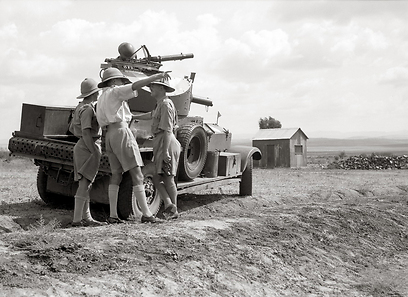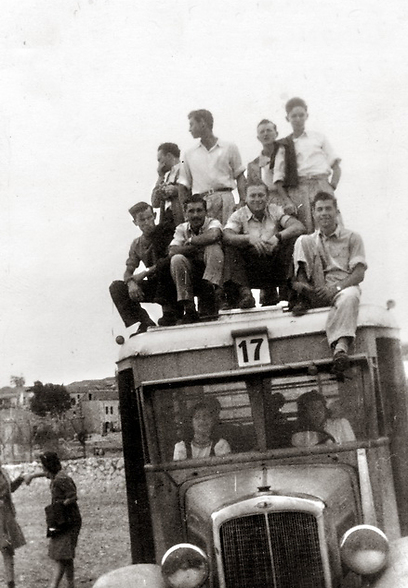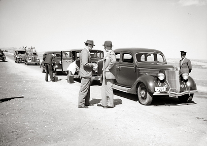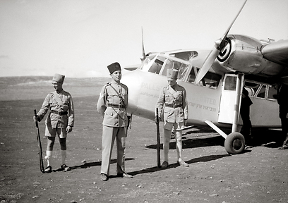 16. במאורעות 1936-9 היה ניסיון להקים קו תעופה בשם: "נתיבי אויר א"י". בתצלום: גפירים ליד אווירון של החברה