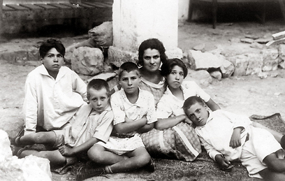 9. האחיות חיה וזמירה בקמן בחצר ביתם.
