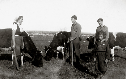 5. בראשית 1948 כבר לא היה מזון לפרות, ולכן הוציאו אותם למרעה כאשר לא היו יריות. בחזית: זמירה ויעל בקמן