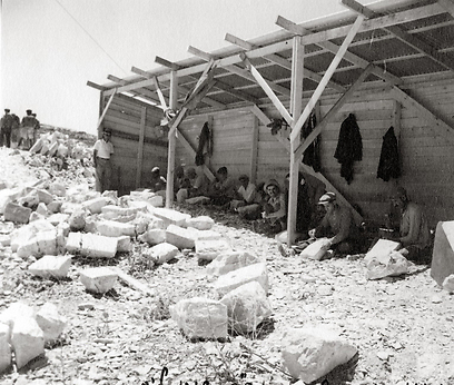 3. עקב היותה של האדמה סביב עטרות סלעית, הקימו המתיישבים בעזרת סולל בונה מחצבת אבן שסיפקה את צורכי הבניה בירושלים. צריך לזכור שבשנות המרד הערבי היה מחסור באבן לבנייה, הייתה דרישה ל"אבן עברית" (כך זה נקרא אז) והמחצבה בעטרות סיפקה את הדרישה. כמו כן, הייתה מחשבה להקים כפר חוצבים בשכנות לעטרות אך הדבר לא התממש. בתצלום: סככת העובדים במחצבת עטרות שנות ה-30.