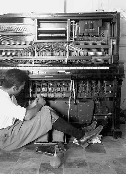 22 רודולף (איננו יודעים מיהו רודולף, אולי אח של לוטי, הוא מלווה את משפחת אלקן במקומות שונים בארץ). בתצלום: מסתבר שכנראה ידע לכוון פסנתר בביתם של הזוג אלקן בחולדה, 1926