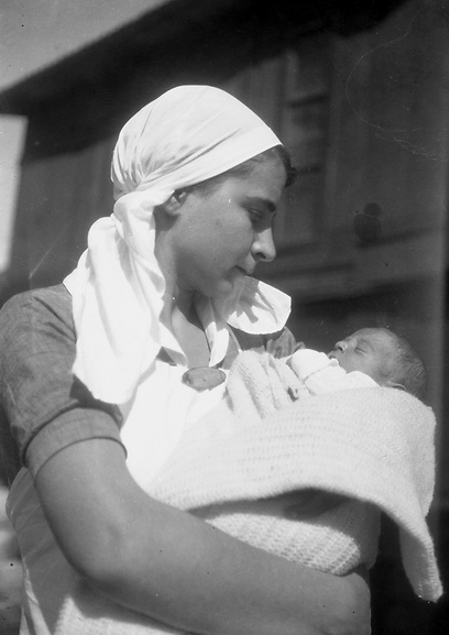 19 פנינה נוביק (כנראה עוזרת) עם לילית התינוקת בנחלת יעקב, 1927