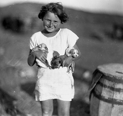 16 הילדה פנינה עם גורי כלבים. נחלת יעקב, 1927