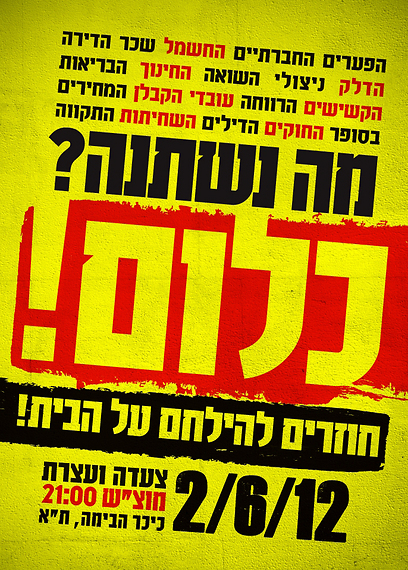 כלום, יואב עינהר, כרזת הפגנת המחאה החברתית, 2 ביוני 2012, מתוך התערוכה "המהפכה החברתית החלה בצעדים חרישיים", יולי 2027, מוזיאון המזרח התיכון, תל אביב-יפו
