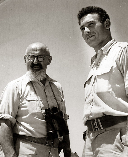 1. מפקד חטיבה 8 יצחק שדה, משמאל, עם מג"ד השריון הראשון של צה"ל פליקס באטוס
