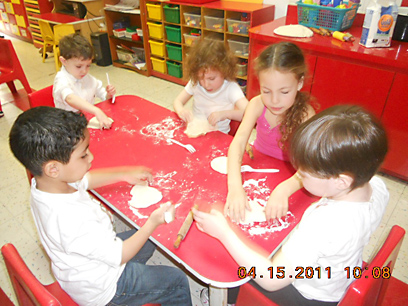 "ילדים", מעירה רחל, "זקוקים ללוח זמנים מובנה וקבוע, ויום טיפוסי בגן רננים מתנהל בדייקנות של שעון שוויצרי: בין 8:30 ל-9:20 ההורים מביאים את הילדים. הגננות מגיעות לגן כבר ב-8:00 ופותחות את השולחנות. סביב כל שולחן יושבים עד שישה ילדים, וכל שולחן הוא 'תחנת עבודה' שמוקדשת לנושא אחר: יש פינת יצירה, פינת סיפור, פינת קוביות ועוד. העבודה ליד השולחנות שונה לכל קבוצת גיל, כמובן. לכל קבוצת גיל תוכנית לימוד משלה. לפני שיציירו צריך ללמד אותם קודם כל איך להחזיק עיפרון. כשאני נותנת לילדי הגיל הרך חימר והם לשים, מועכים, ודופקים אותו על השולחן, זו בעצם הכנה מוטורית להחזיק עיפרון. עם הילדים המבוגרים יותר, הגננות עובדות אחד לאחד על 'דפי עבודה', חיבור, כתיבת השם, לעבור על הקווים של האותיות, לקרוא מילים פשוטות, לפי הרמה של כל ילד. ב-10:00 יש ארוחת בוקר, ואחריה מה שנקרא 'שעת ריכוז', שלב הלמידה. בכל כיתה יש 'לוח פעיל': שלאורך היום מתמלא באותיות, מספרים, דמויות וצורות צבעוניות, ומהווה תזכורת לכל מה שנלמד באותו היום. אם הקראנו את הסיפור 'אליעזר והגזר', כל הדמויות יופיעו על הלוח. אם קראנו על השבת, ציור של הפמוטים ישאר תלוי שם".