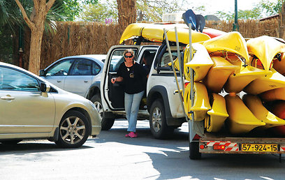 הטנדר עמוס קיאקים מהצפון. רחלי המדריכה יורדת ראשונה