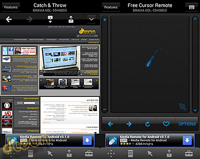 אפליקציית הסמארטפון Media Remote מאפשרת שימוש בטלפון כשלט חכם. האפליקציה באה לעזר בעיקר בעת גלישה באינטרנט, במצב שמכונה Catch & throw בו האתר שמוצג על מסך הטלפון, עובר בלחיצת כפתור אל מסך הטלוויזיה הגדול או להפך. עוד תכונה מבורכת של ה- Media Remote היא שימוש במסך הטלפון כציין חכם לטלוויזיה, בו תנועת האצבע שולטת על החץ שנע על מסך הטלוויזיה, כולל אפשרות ביצוע זום (ע"י מחוות "צביטה") וגלילה של העמוד, דיוק השליטה בסמן על המסך הינו בגדר הסביר דרך האויר ובעת טעינת דפים כבדים זה גוזל מרמת הדיוק.