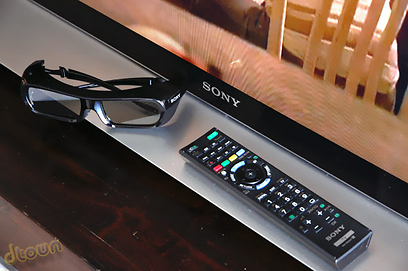 המסך של סוני מגיע עם זוג בודד בלבד של משקפי תלת מימד אקטיביים, מה שגורר הוצאה של עוד כמה מאות שקלים לזוג נוסף. הם מהסוג שאינו דורש החלפת סוללה אלא מגיע עם כבל USB לטעינה ישירות מגוף המסך. דופן זרוע המשקפיים הינה רחבה בכדי לצמצם כניסת אור צידי ולמרות שהמשקפיים מתקשרות עם המסך (לסנכרון התמונה) דרך אינפרא אדום, הקשר היה רציף כמעט תמיד.