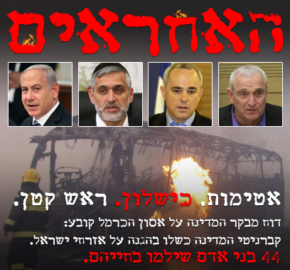 יחד עם כל אלו - האחריות היא של אותן המערכות שכשלו ושל אלו שעמדו בראשן. אף שהביקורת מופנית כלפי ממשלות ישראל לדורותיהן, האחריות רובצת לפתחם של חברי הממשלה הנוכחית, שכן אסון השריפה הנורא אירע בעת כהונתם של אלו, "במשמרת" שלהם בהיותם מכהנים בתפקידם תקופה משמעותית - כשנה ותשעה חודשים.