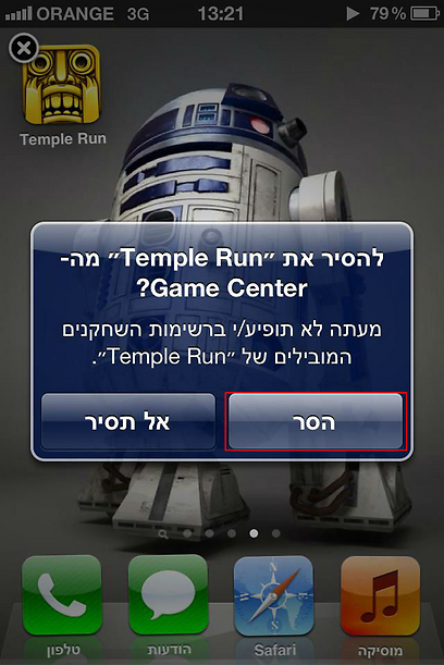 4. אם מדובר במשחק שנתמך ב-Game Center, תופיע הודעה השואלת אם תרצו להסיר את המידע משם. גם אם תלחצו על אל תסיר, המשחק עצמו יוסר.