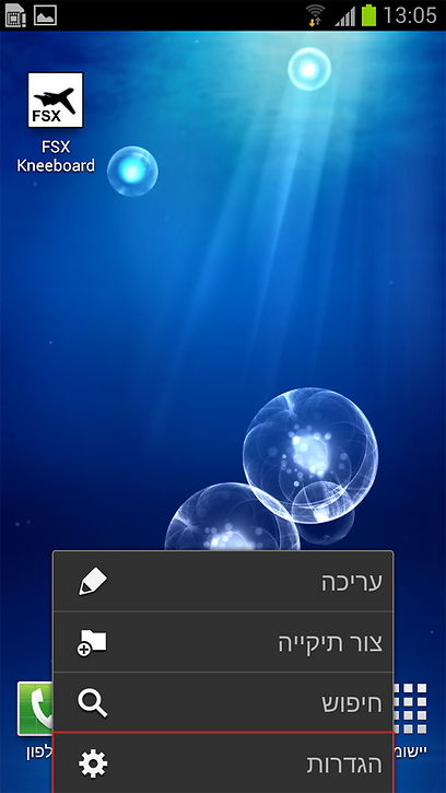 1. בזמן שאתם במסך הראשי, לחצו על מקש התפריט הפיזי בצד שמאל למטה > לחצו על הגדרות.