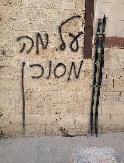 כתובת הגרפיטי שזעקה מהקיר "על מה מסוכן?" משכה את תשומת ליבי בטיול בסמטאות יפו, אזור מפוקפק לשעבר ואופנתי בהווה - מה שמייחד את הכתובת הזו היא האות ן סופית שהיא כאן ארוכה במיוחד.