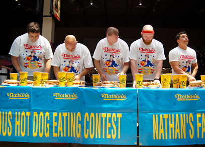 לרובנו, נקניקיה אחת בלחמניה או אולי שתיים בהחלט סותמות את החור בקיבה. זה בסדר גמור, אבל לא בשבילנו מארגנים את תחרות בליסת הנקניקיות השנתית, מסורת ענק שמתקיימת גם היא ב-4 ביולי בטיילת של קוני איילנד. התחרות, בחסות מותג הנקניקיות המקומי הוותיק Nathan's, מקבצת אליה מדי שנה מקצועני אכילה מכל רחבי היבשת. מול קהל של כ-40,000 איש הם מתחרים באכילת עשרות (!) נקניקיות, כשהמנצח הוא זה שמצליח לדחוס הכי הרבה נקניקיות תוך 10 דקות. המנצח בשנה שעברה ואלוף ותיק בתחום, הוא ג'ואי צ'סנט, שאשתקד הצליח לתקוע 68 נקניקיות שלמות. התחרות נחשבת, ובצדק, כאמא של תחרויות החזירות בארה"ב. זה אולי קצת מגעיל, אבל יותר אמריקנה מזה קשה למצוא.