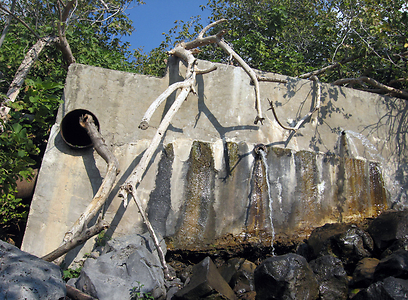 בריכת הבטון שבה "נתפסים" מי המעיין (צילומים: אורית סקוטלסקי)