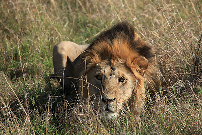 החתול הגדול באפריקה. אריה מתכונן לתקיפה (צילומים: עינב ברזני)
