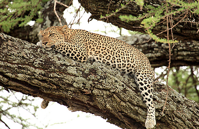 את רוב שעות היממה מעביר הנמר במנוחה על העץ