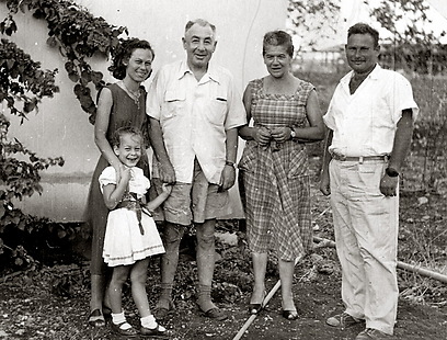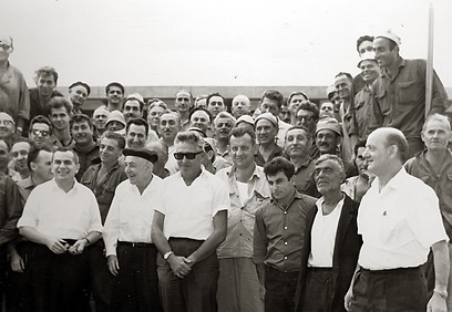 4-3. עובדי התע"ש בחברתו של צבי. הוא ידע לקשור יחסים אישיים עם העובדים אבל גם דרש מהם איכות ביצועים.