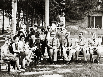 13. בשנים אלו נוצר גם הקשר של תע"ש עם צבא איראן (בטרם שלטון האייטולות). בתצלום: צבי יושב במרכז, מימינו קציני צבא פרסים, מאחור עומד יעקב נמרודי עם אשתו ובנו עופר.