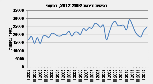 ברבעון השני של 2012 נמכרו כ-24.5 אלפי דירות, הרמה הגבוהה ביותר מאז הרבעון הראשון של 2011. מדובר בגידול של כ-9% בהשוואה לרבעון הקודם, וגידול של כ-12% בהשוואה לתקופה המקבילה אשתקד.