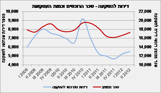 השכר הממוצע של מי שרכשו דירה להשקעה ברבעון השני של 2012 עמד על 17,300 (ברוטו לחודש, ליחיד). מדובר בשכר גבוה בכ-4% משכר רוכשי דירה להשקעה ברבעון הראשון, אולם עדיין נמוך ב-11% בהשוואה לרמות השיא בשכר הרוכשים שנרשמו ברבעון האחרון של 2010.
