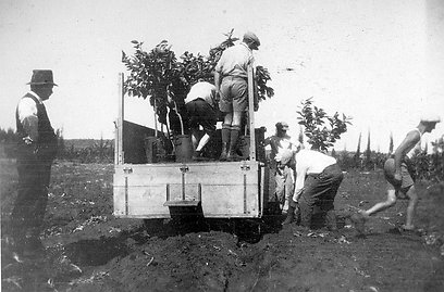 2-1.הרמן רוזנטל אחיה של רוזה נוטע פרדס במשקו בפרדס חנה.