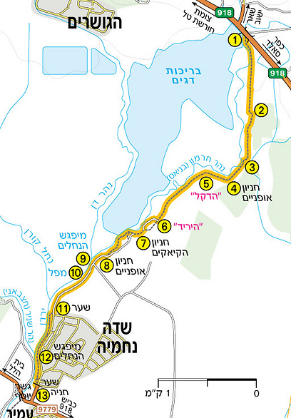 נקודת סיום: במגרש החניה שמדרום לשער של קיבוץ שדה נחמיה