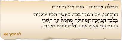 זו תפילה נוספת הנאמרת לאורך היום כולו, ומרגשת בכל פעם מחדש. אם אתם חובבי חזנות כנסו לביצוע של החזן חיים אדלרואם לא, אולי תיהנו מהביצוע החסידי של להקת "חבר'ה".