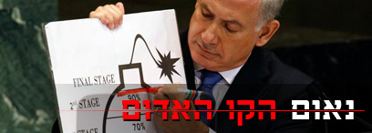 הקו האדום לאיראן מעולם לא נראה מוחשי יותר. בעזרת שרטוט של פצצה עם פתיל וטוש אדום, ראש הממשלה בנימין נתניהו הציג הערב (יום ה') בעצרת הכללית של האו"ם את הקו שאותו ישראל אינה מוכנה שאיראן תחצה בדרך לפצצת אטום. נתניהו, שזכה למחיאות כפיים באולם, אמר כי האיראנים שועטים לעבר פצצה גרעינית וכי עד האביב - או לכול המאוחר עד הקיץ - יהיה בידם די אורניום לפצצה גרעינית, ולכן יש לעצור אותם עד אז.