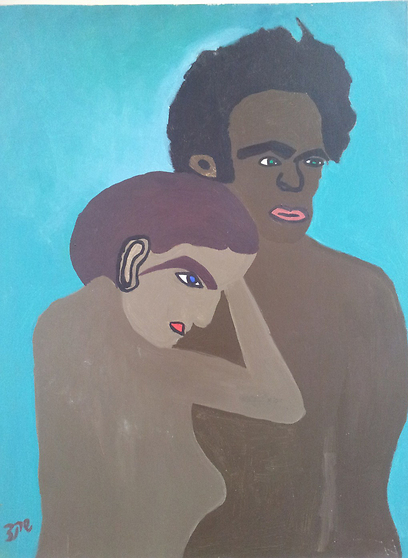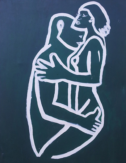 בשלב כלשהו לקראת סוף התיכון היה לנו פרויקט של אהבה וזוגיות ושם הכנתי גרסה משלי לציור מהתקופה הכחולה של פיקאסו, של גבר ואישה, שגם יופיע בתערוכה. כשהתנדבתי לצבא לחטיבת השריון, הפסקתי עם הציור לתקופה קצרה, אבל לפני שלוש שנים, כשהצטרפתי ל'ניצן אונים', חזרתי לצייר.