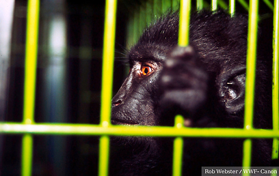 מקוק שחור בכלוב בחנות לחיות מחמד בסין, כפי שתועד על ידי פעילי הארגון הנלחמים נגד ציד חיות לסחר.