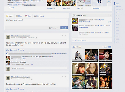 השינוי המשמעותי האחרון היה ב-23 בספטמבר 2011, נצח במושגי רשת, אז הטיימליין, פס הזמן האישי, החליף את הממשק הישן של פרופיל המשתמש בפייסבוק. ההיסטריה פרצה באמת בינואר לאחר לאחר הודעת פייסבוק כי תכפה את השינוי ושוועת גולשים עלתה: מי הם בכלל הפייסבוק האלה שיכפו עליי שינוי ברשת שהם מנהלים?