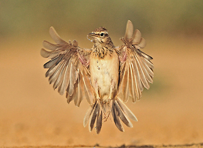 עפרוני מצויץ בזינוק במשאבי שדה (צילום: דובי קלעי)