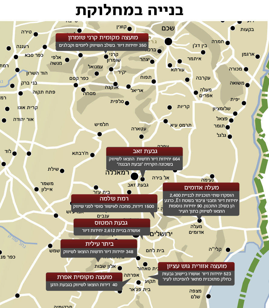 ביהודה ושומרון מדובר על עוד 4,500 יחידות דיור ומבני ציבור, רובם במעלה אדומים בשטח E1, לפי הפירוט הבא: