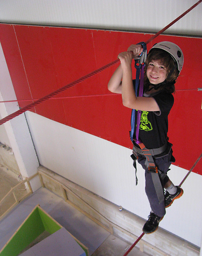 בשבע השנים האחרונות, מאז שנעשיתי אמא, צברתי קילומטרז' מפואר במשחקיות ובפעילויות לילדים. כבר חשבתי שאף אחד לא יכול להפתיע אותי יותר, עד שהגעתי לדב הלבן. במקום המשחקים הסטנדרטיים מצאנו שני קירות טיפוס מאתגרים, טרמפולינה ענקית שממנה נוחתים היישר לבור ספוגים מרופד, מתקן נמוך להליכה על חבל, מתקן מאובטח להליכה על חבל בגובה, מגלשה תלולה אליה עולים באחיזה בגלגלת, חדי אופן, וגולת הכותרת: באנג'י. לצד כל אלו יש גם ג'ימבורי קטן לפעוטות, מגלשה לוליינית, ונדנדות.