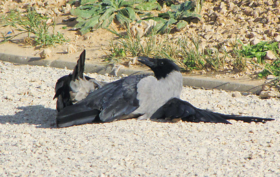 לעורבים יש טריטוריות מוגדרות. בכבישים ניתן לראות אותם פרוסים במרחק של כ-150-200 מטר זה מזה, כשכל אחד אחראי ל"ניקוי" הפגרים שבשטחו. כאשר עורב נכנס לטריטוריה שכנה, במיוחד כשהכבישים נקיים, הוא לא מתקבל בברכה. הקרב יכול להימשך דקות ארוכות. עורבים אחרים בני המשפחות מקרבים למקום הקרב בצעקות רמות, ואינם מאפשרים לשום עורב להתערב בקרב (צילום: חיים מויאל)