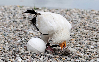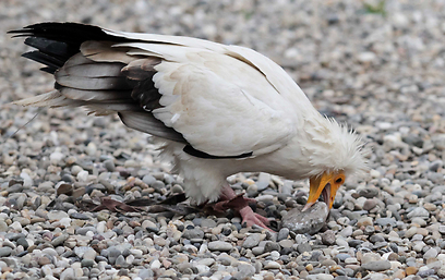 הרחם ממשפחת הנשרים מוגדר כמשתמש בכלים. הרחם, חובב הביצים, נצפה לא אחת משליך אבנים בגודל מתאים על ביצי יען כדי לפצח את קליפתן העבה ולאכול את תוכנן. ברצף התמונות כאן נבדקה התופעה על רחם בשבי ועל ביצים מדומות שבתוכן הוחבא ה"פרס" - קוביית בשר - תחליף לגוזל. (צילומים באדיבות לינדסי יאניק. spangels44)