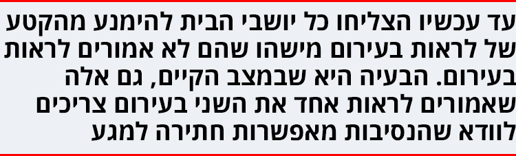 הכול התחיל מזה שהפסדתי את הדירה שלי בהתערבות. אני אמרתי שבחיים לא נצליח למכור אותה במחיר שאנחנו רוצים, ואשתי אמרה שכן. בערך 27 שניות אחרי שפירסמנו אותה באינטרנט כבר ישב אצלנו בסלון זוג צעיר שהתנאי היחיד שלו לעסקה היה שנשאיר לו את המפזר חום ואולי עוד כמה קולבים.