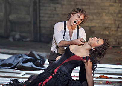 זמרת האופרה אניטה ראשוולישווילי (Rachvelishvili), שגרמה למבקרים להתעלף כשגילמה לראשונה את התפקיד הראשי באופרה "כרמן" במטרופוליטן אופרה בשנת 2010, חוזרת השבוע לעיר עם ההפקה הקצבית והצבעונית של ריצ'רד אייר לסיפור הטרגי. הטנור העולה יונהון לי מגלם את דון חוזה, שאהבתו הבלתי אפשרית לכרמן הורסת את שניהם. למרות השם הלטיני, מדובר למעשה באופרה צרפתית מאת המלחין ז'ורז' ביזה, המבוססת על הנובלה "כרמן" מאת פרוספר מרימה, ושהוצגה לראשונה בשנת 1875 בפריז. כדרכן של האופרות הגדולות, גם כאן העלילה מתבססת על אהבה אסורה וקשה בין כרמן, צועניה חמת מזג, ואיש חיל המשמר דון ז'וזה, שמתאהב בה ומצטרף אליה לקבוצת המבריחים אליה היא משתייכת. בהמשך היא עוזבת אותו לטובת לוחם השוורים אסקמִיוֹ (שכאן מגלם אותו הזמר טדי רודס) וההמשך הוא, כמובן, מישמש רומנטי עמוס בשירים ובפאתוס. ההפקה של המטרופוליטן אופרה, שתוצג ביום שלישי הקרוב (26.2) בלינקולן סנטר, מצטיינת בקצב המהיר, מה שמבטיח שגם צופים שאינם מעריצי אופרה מושבעים ימצאו את עצמם מרותקים לצבעים, לריקודים ולצלילים הבוקעים מהבמה.