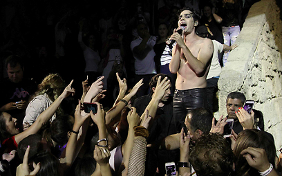 עוגה שהוצנחה על הבמה, מעריצים באקסטזה והשיא - חברי להקת קולדפליי מברכים! אביב גפן סגר 40 אביבים בהופעה בקיסריה וזכה לשלל הפתעות