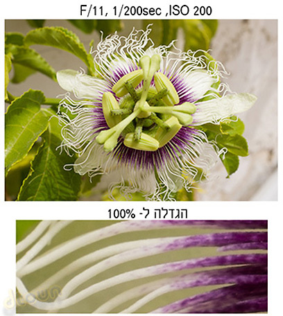 עדשת המצלמה הרחבה יחסית (35 מ"מ) המאפשרת מרחק מיקוד מינימלי של 10 ס"מ לא מיועדת לצילומי מאקרו, לתשומת לבכם, צלמי החרקים. לעומת זאת, למי שמעוניין לצלם מקרוב אובייקטים יותר גדולים מאשר גמל שלמה בחצר, המצלמה כן מאפשרת תוצאות לא רעות בכלל. בעת צילום מאקרו עומק השדה נמוך מאוד, לכן למרות תופעת העקיפה, יש צורך בצילום בצמצמים סגורים יחסית. לתשומת לבכם, בעת צילום ממרחק קטן מ-50 ס"מ, בלתי ניתן למקד בעזרת העינית האופטית, ויש צורך לעבור לעינית הדיגיטלית או למסך האחורי.