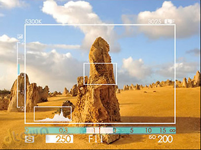 אחד המאפיינים הבולטים ביותר בדגם הקודם היה העינית המשולבת שבפינה המצלמה. מה זה עינית משולבת? בקצרה, שילוב בין עינית אופטית לעינית אלקטרונית, בהתקן אחד. למה צריך את זה? לכל טכנולוגיית תצוגה יתרונות וחסרונות מובנים, והשילוב בין שתי התכנולוגיות מאפשר פתרון אלגנטי לצלמים במצבי הצילום השונים, המחייבים עיניות שונות.