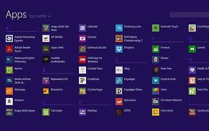 ניווט באפליקציות יכול להיות בעייתי כשיש הרבה מהן. מסך All Apps החדש מנסה לעשות סדר בבלאגן. בדחיפה כלפי מעלה (עם היד או עם העכבר) התצוגה תתחלף לרשימת כל האפליקציות והתוכנות המותקנות, שאותן תוכלו למיין לפי אלו שבשימוש לרוב, או לפי קטגוריות כמו משחקים וכלי עזר. פונקציית החיפוש שופרה ועתה מציגה תוצאות מתוך האינטרנט ומהמכשיר עצמו בו זמנית, אחד ליד השני. ואם בריבוי פעולות עסקינן, אם תפתחו תמונה מתוך מייל באפליקציית הדואר המובנית, התמונה תפתח במסך חצוי את אפליקציית התמונות המובנת. מעתה ניתן לקבוע בדיוק כמה מהמסך יוקדש לאיזו אפליקציה במקום רבע/שלושת רבעי שהיה נהוג עד כה, ובנוסף ניתן לפתוח מספר אפליקציות במקביל ולחלק את המסך ביניהן.