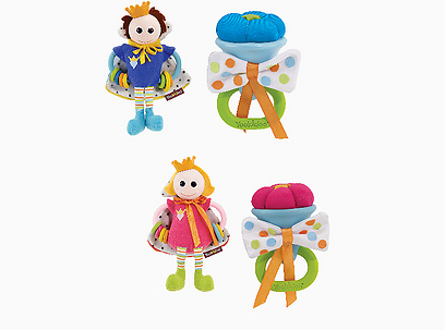 חברת Yookidoo מציעה סט רעשן ונשכן בעיצוב נסיכותי העשויים מחומרים רכים ובטיחותיים. המחיר: 65 שקל.