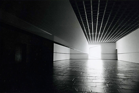 האמן רוברט אירווין החל את דרכו כצייר בשנות החמישים, אולם מהר מאוד הוא נתפס בגל המרתק של האמנות הקונספטואלית של שנות השישים ושינה כיוון לעיסוק בחלל ואור כאמן של מיצבים (אינסטליישן). העבודה המוצגת כאת במוזיאון וויטני עוצבה עבור המוזיאון הזה ב-1977 והיא חוזרת כעת למלא את הקומה הרביעית של הוויטני. מדובר בעיצוב החלל באמצעות בד סקרים המשמש לעיצוב במה בתיאטרון. אולם אירווין אינו מעצב את במת התיאטרון כי אם את החלל עצמו, וביחד עם התאורה הטבעית המגיעה מהחלון ועין המתבונן נוצר הקסם הזה שהוא בדיוק מה שאמנות קונספטואלית אמורה ליצור: מבט חדש ומחדש על חלל ואור באופן כזה שהיצירה מייצרת את המשמעות של עצמה.