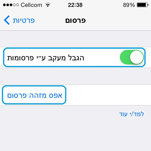 מיקום: הגדרות>פרטיות>פרסום